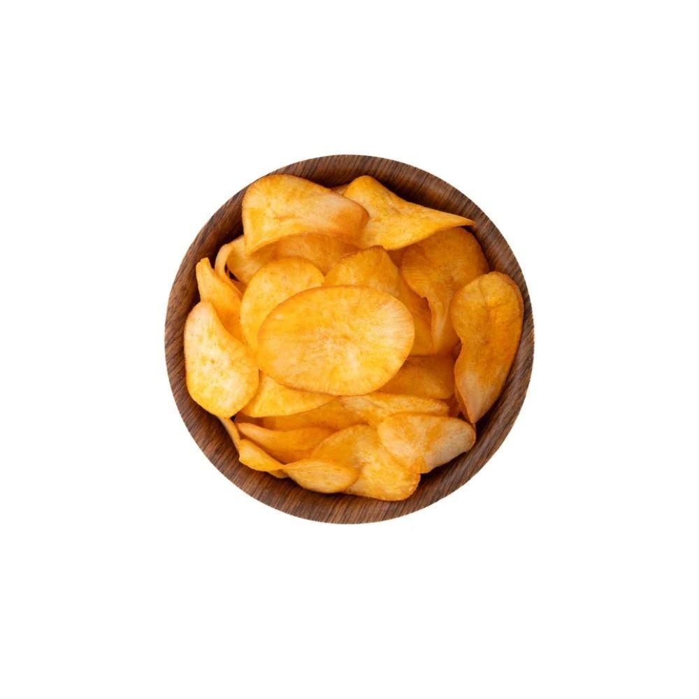Savor the authentic taste of South Indian street-style spice with Tapioca Chips Chilly by A1 Chips. Made from fresh tapioca roots sourced directly from trusted farms in India, these chips are thinly sliced, fried to crispy perfection, and coated with a fiery chili seasoning. This snack has its roots in the coastal regions of Kerala and Tamil Nadu, where tapioca is a beloved staple, enjoyed for generations.